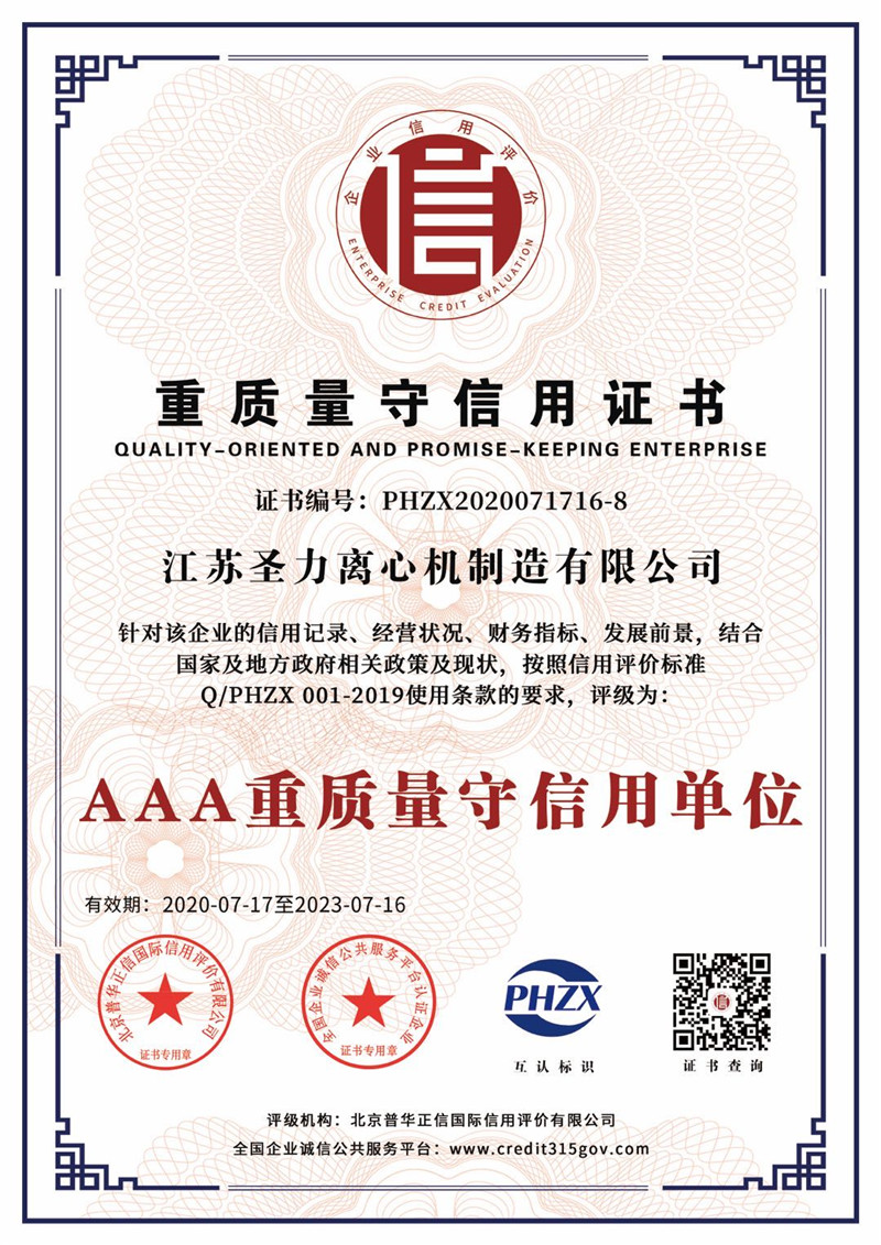江蘇圣力離心機制造有限公司是國內分離機械行業中主要的離心機生產企業,對離心機的研究、設計、制造有多年的歷史,擁有齊全的設備、完善的檢測手段。公司已通過IS09000國際質量體系認證、ISO14001環境管理體系認證、ISO45001:2018職業健康安全管理體系認證和CE認證,是江蘇省高新技術企業,曾榮獲國家和地方多項榮譽稱號。